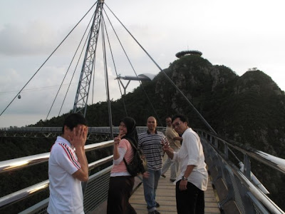 We arrive in Langkawi around 4.30pm after 1hour 30min uncomfortable boat ride from Kuala Kedah. We go straight to Langkawi cable car by a van that we rented. Our driver for the day is Gamat...crazy little engineer from Segamat. The Oriental Village in the upper northwest of Langkawi Island, near Kok beach, is the entrance for the cable-car ride, which takes visitors all the way up to Mount Mat Cincang, Langkawi’s second highest peak. Malaysian only pay RM15 while non-malaysian Rm30 which worth every penny. After the cable car started to ascend i can feel my heart racing(like before riding a roller coaster). Its crazily high and very steep. If wind blow, we can feel the cabin rawking gently with it. On the very top stations, we can enjoy 360 degree view of the legendary island. My favourite part of it is the skyline bridge...a bridge suspension between 2 mountains. We enjoy our first Langkawi's sunset at the very tip of Mat Cincang..indeed beautiful and breathtaking! After the cable car, we check in at Sri Kijang Resort at Chenang Beach. Its a 4/5 star resort under Bank Negara Malaysia. Thanks to Syaza's sisters for the opportunity to stay a night there.